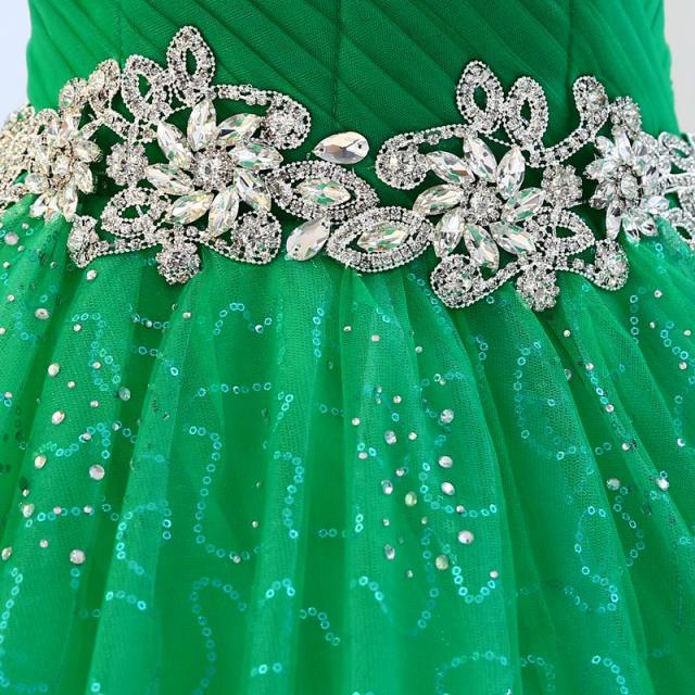 高品質 カラードレス ロングドレス パーティドレス ワンピ ビスチェ 緑 結婚式 二次会 発表会 撮影 パニエ付 オーダーサイズ可能 D170
