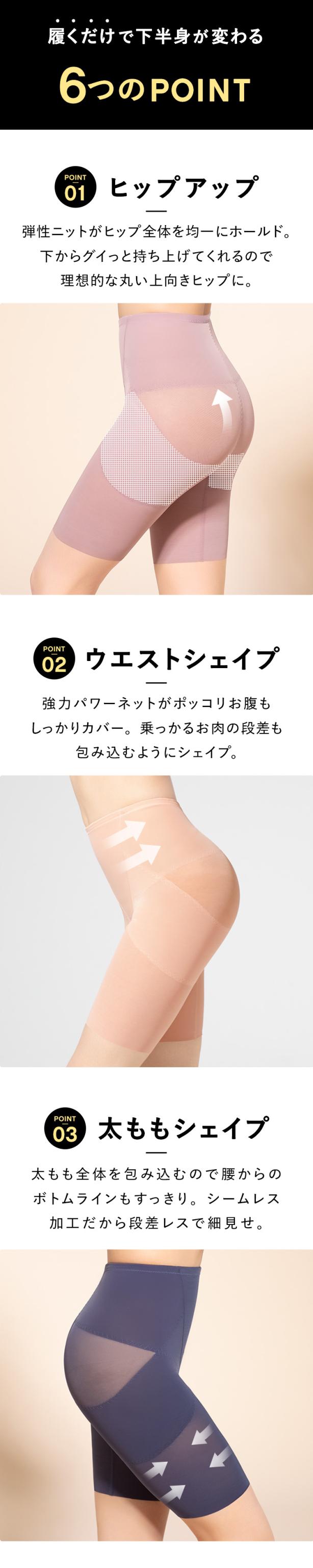 - 見た目は生地が薄い感じでどうかなと思いましたが、履いてみるといい感じの着圧感です。丈も長めで、そこもとても気に入りました。腿に段差も出来ずパンツスタイルも安心です。