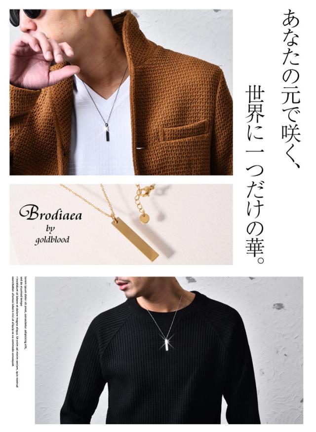 〜Brodiaea(ブローディア) finesteel IDプレートネックレス〜●デザインポイント縦長のプレートトップを生かすため、極細の1mmスキニーチェーンで味付け。切れ目のないチェーンとオーリングを使用しているため、ひっかかりで切れにくい作りにも注目です。チェーンにはアジャスターが付いており、服に合わせてバランスを調節できるのもポイントです。