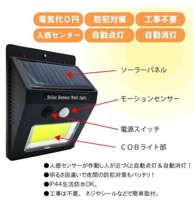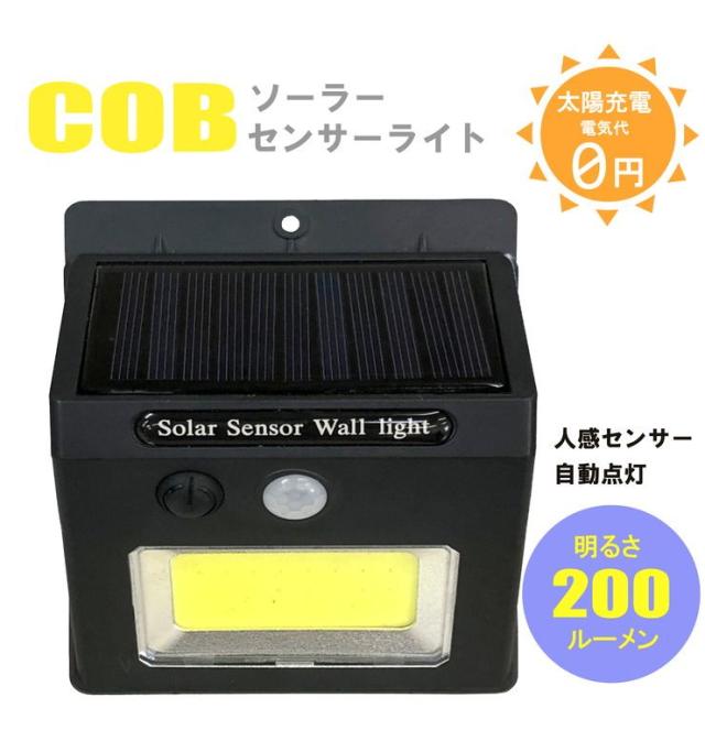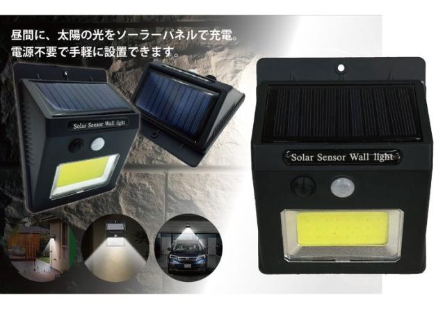 COBソーラーセンサーライト 防犯 玄関 COBチップ 太陽光パネル 省エネ 自動 車庫 セキュリティ(代引不可)【送料無料】