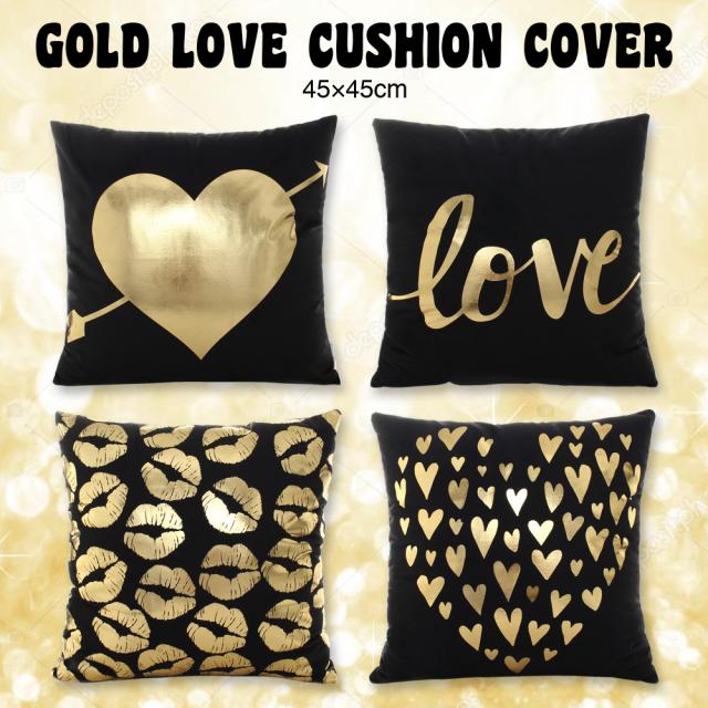 メール便 送料無料 箔押し ゴールド LOVE クッションカバー 45×45cm 全4種 インテリア 雑貨 ラブ ラヴ ブラック