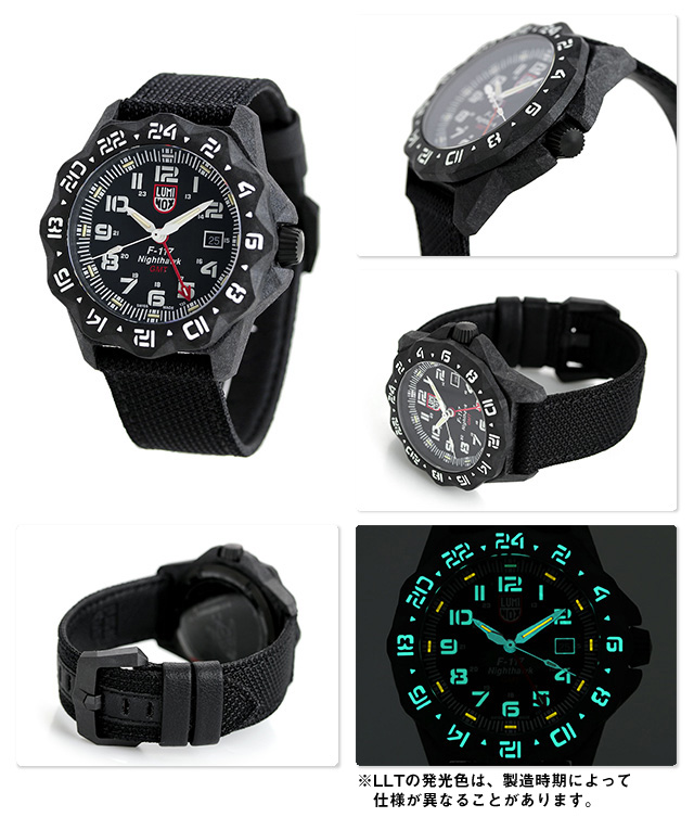 7年保証キャンペーン ルミノックス F-117 ナイトホーク 6440 シリーズ 44mm スイス製 クオーツ メンズ 腕時計 l6441 LUMINOX F-117 NIGHTHAWK 6440 SERIES アナログ オールブラック ◆LUMINOX(ルミノックス)は1989年に創業。高性能なスポーツラインを展開しており、ラテン語で「明るい夜」を意味するブランド名を掲げているように、最先端の発光と視認性の良さを特徴としています。極限の状況下で行われるミッションで必要となる視認性を確保しているルミノックス時計は、特殊軍用時計として絶対的な信頼感を得ています。 1998年、米空軍F-117のパイロットからの開発要請によって作られたF-117ナイトホークステルス戦闘機のシリーズ。2016年に製品化されたステンレススチールのケースがカーボンケースにて満を持して登場。F-117の複雑な多面体の機体をモチーフにしたケースは、堅牢性を持ちながら、軽くて装着性も高い仕様となっています。ストラップは、防弾・防刃ベストなどにも使われているケブラー素材で、ハードな使用にも耐える高分子構造。個性的でありながら実用性にも優れています。