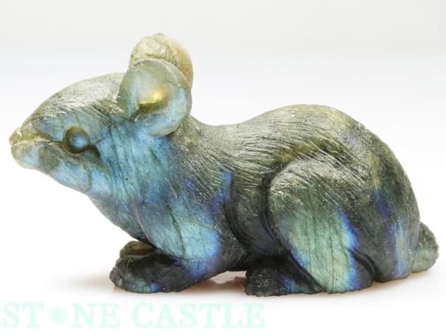☆置物一点物☆【天然石 彫刻置物】ねずみ ラブラドライト No.17