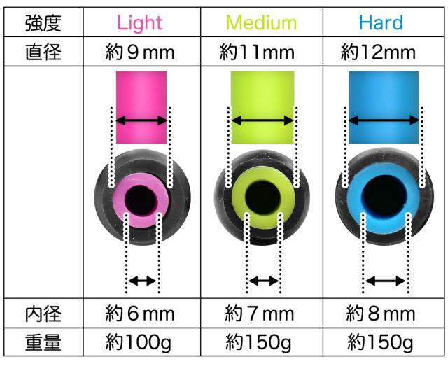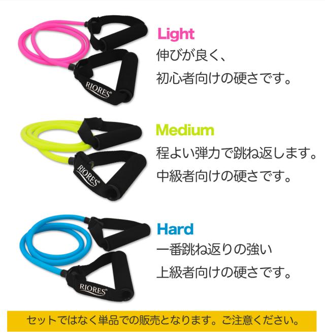 - ミディアムを買いました。チューブも長めで問題なく。負荷も適度にかかりハードタイプも欲しくなっているところです。
