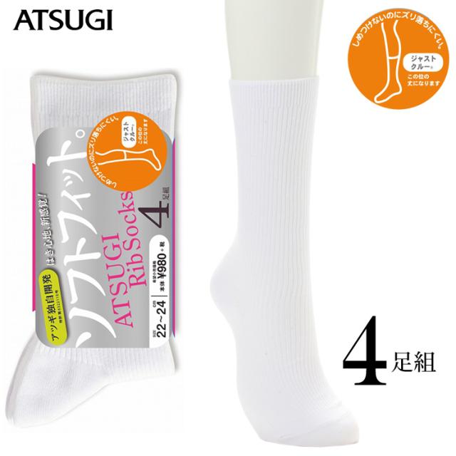 レディース ソックス ATSUGI ソフトフィット ジャストクルー丈(LJ50084)4足組 アツギ リブソックス