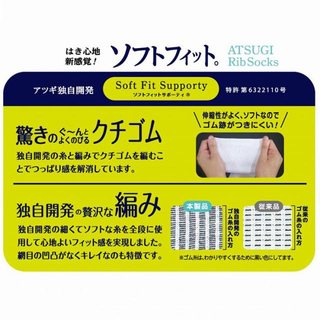 はき心地にこだわった独自開発のソフトフィットサポーティを使用したアツギオリジナルのリブソックス。