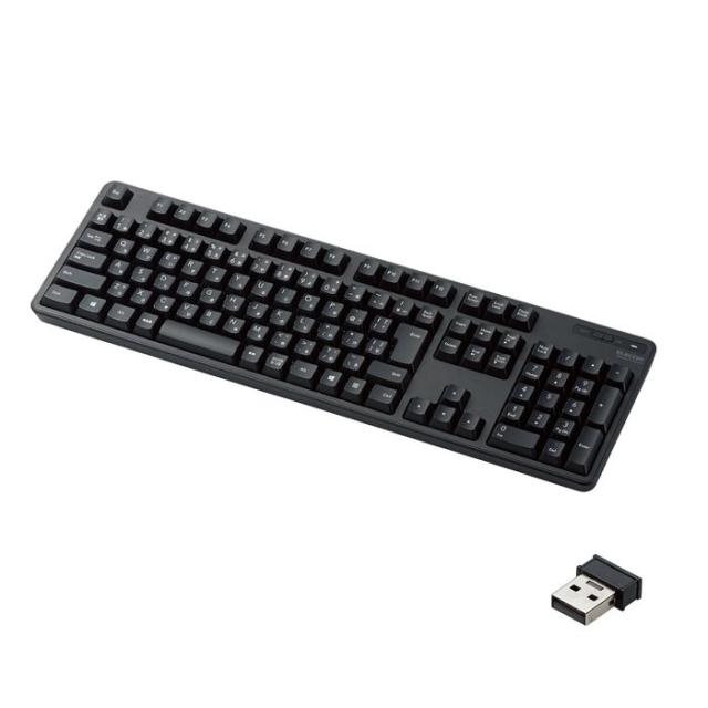 ●ワイヤレスキーボード、wireless、keyboard、メンブレン、無線キーボード、電池式、フル、ビジネス、高耐久、1000万回、小型レシーバー、2.4GHz、電池長持ち、電池長寿命、black