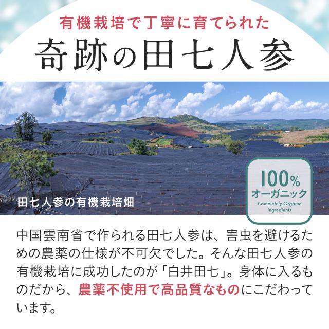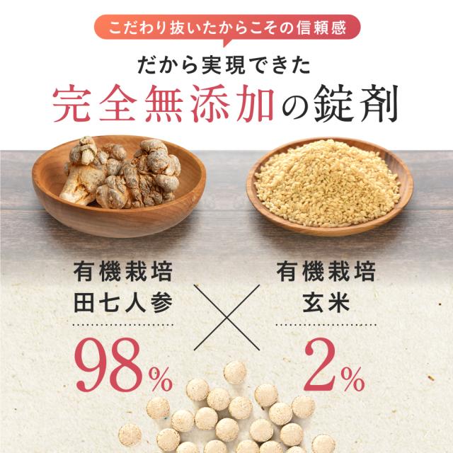 【原材料】有機田七人参(98%)(三七人参)・有機玄米(2%)の添加物なしの和漢サプリメント