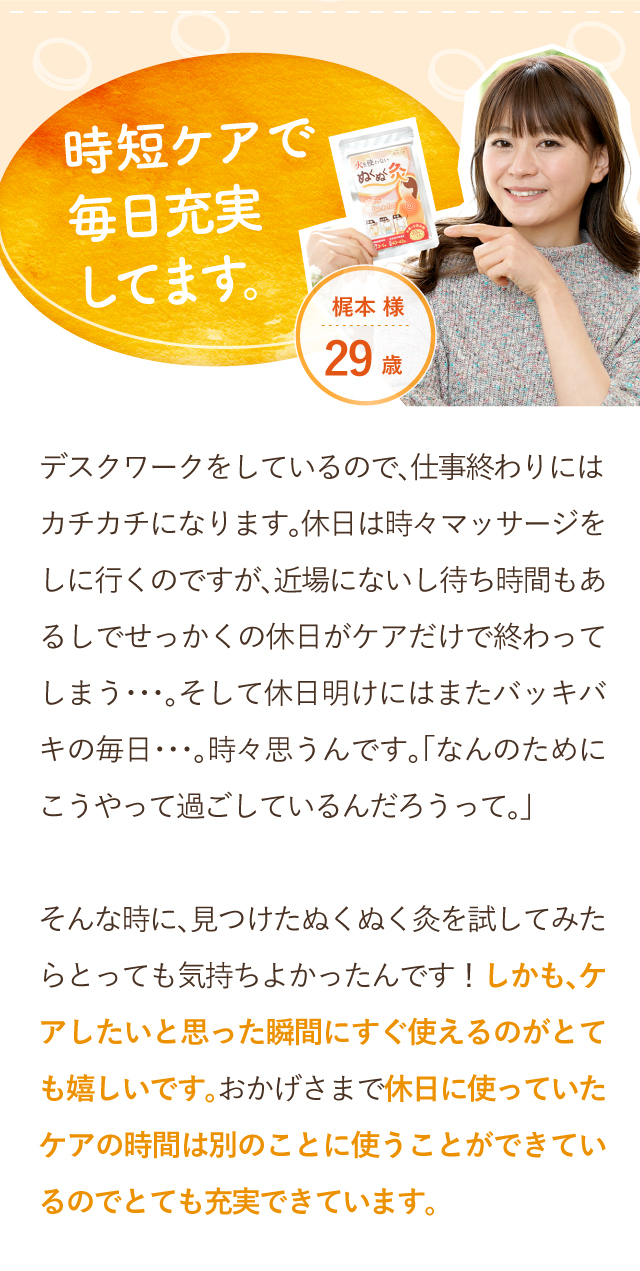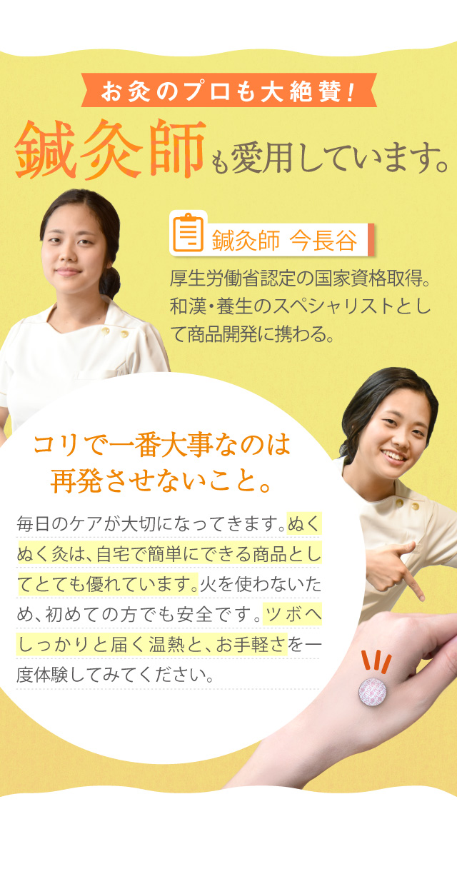 - 温かさやお灸特有のピリピリ感がほぼない。と、言うか…個体差なのか??温かく感じるものとそうでないものがパッケージに混ざってるような………。 あと、剥離紙が剥がしにくい。スムーズに剥がれるものと剥がせず...