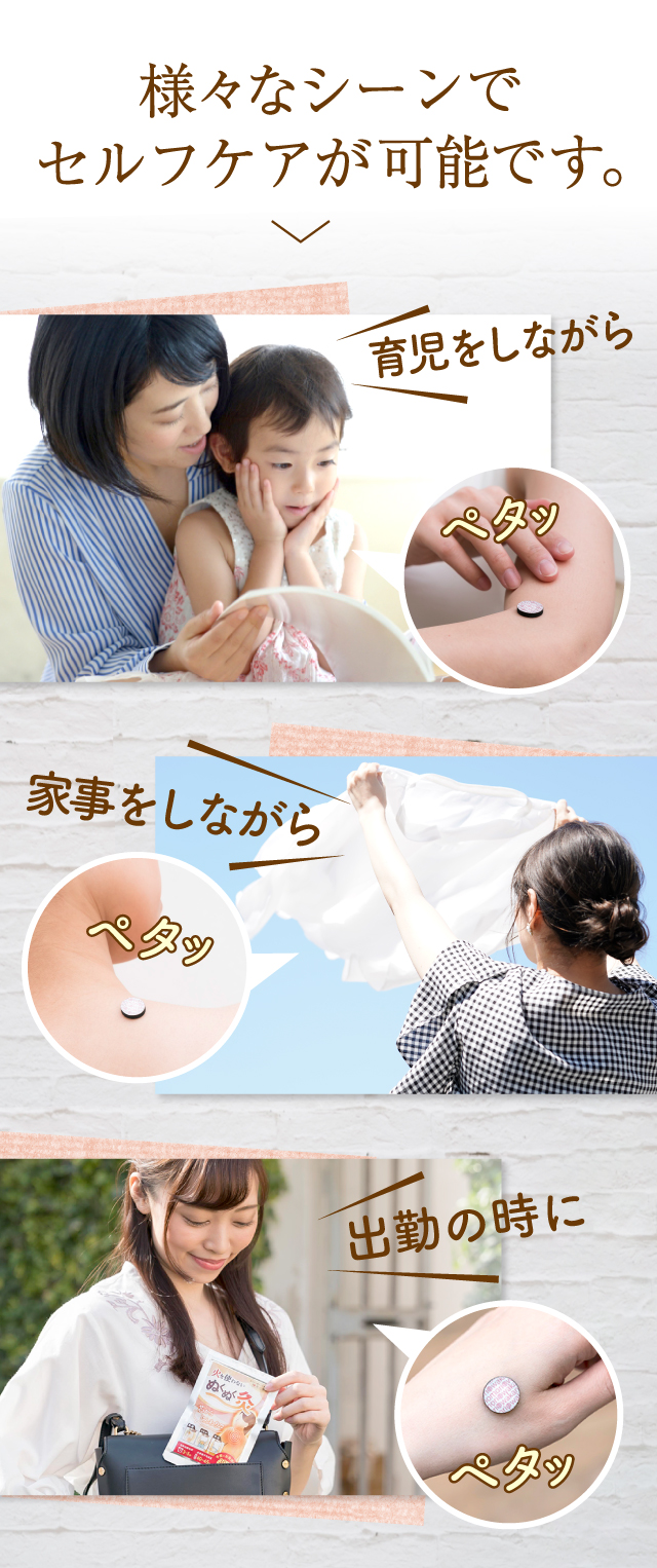・温熱で湿疹や蕁麻疹がでる方 ・テープや絆創膏の刺激に弱く、かぶれやすい方 ・本人の意思で本品を取り外すことができない方 ・幼児