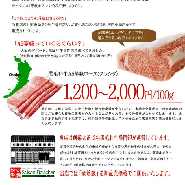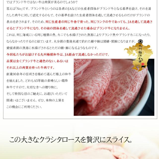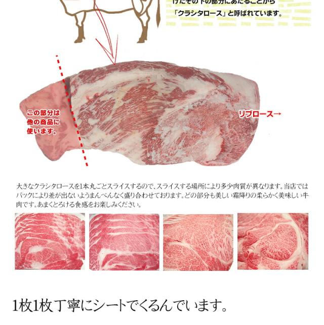 | 商品名 | 九州黒毛和牛A5等級霜降クラシタスライス |