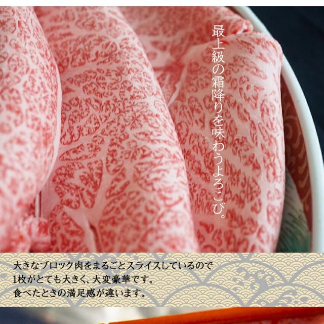| 商品説明 | 自然豊かな九州で丁寧に育てられた極上の和牛を厳選しました。 黒毛和牛の中でも最高ランクのA5等級を使用。高級部位クラシタロースの美しい 霜降り部分をスライスしました。やわらかくとろける食感と脂の甘み、お肉の 旨みはしゃぶしゃぶ、すき焼きなどの鍋料理に最適です。 また、スライスを1枚1枚丁寧なシートで巻いておりますので 専門店のような高級感のあるお品となっております。 ご家庭で専門店のような豪華なお鍋をお楽しみください。 またお中元・お歳暮、お祝い・内祝いなどのギフトにも大変好評です。 【黒毛和牛・和牛・A5・すき焼き・すきやき・すき焼・しゃぶしゃぶ・ 霜降・霜降り・牛肉・お祝い・御祝・内祝・ギフト・お中元・お歳暮・ 母の日・父の日・敬老の日・九州・佐賀産・宮崎産・鹿児島産・熊本産・大分産・ 長崎産・シート巻】 |
