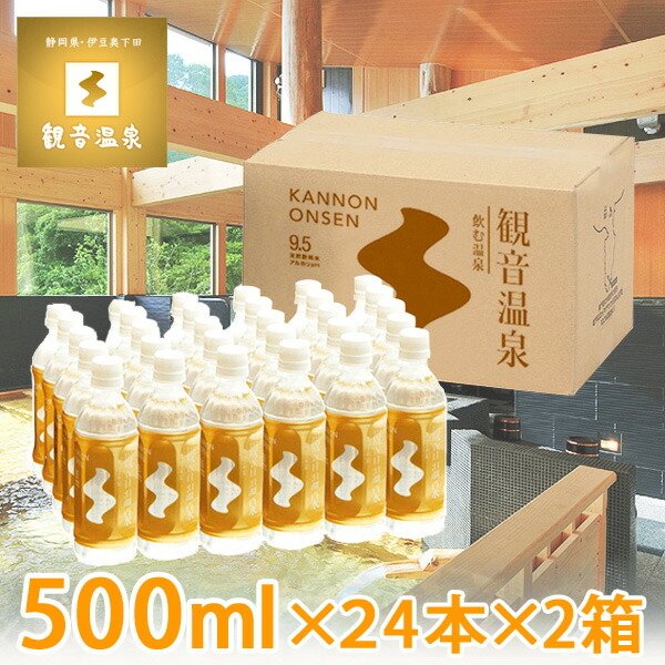 観音温泉水 ペットボトル 500ml×24本入り×2箱=計48本 ミネラルウォーター 国産天然水 飲む温泉水 2ケース 飲泉 シリカ水 シリカウォーター 超軟水 強アルカリ天然水 国内天然水