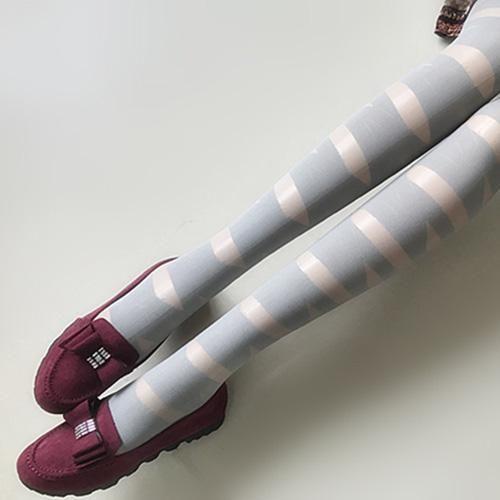 120デニールのしっかりとした厚みのある生地をベースに、生地の厚さの違いで濃淡を出しストライプ模様をあしらったデザインは、無地のストッキングやタイツよりも遊び心があり大人の色気をたっぷり含んだデザインに仕上げました。