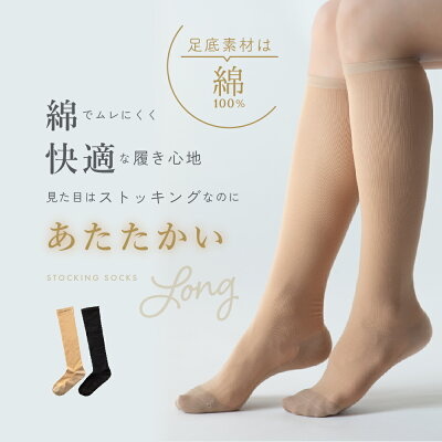 ストッキングソックス ロング フットカバー 秋 レディース 35デニール 秋冬 あったかい 靴下 くつ下 くつした ハイソックス ひざ下 パンプス タイツ 黒 ブラック ベージュ 丈夫 冷え対策 蒸れない 暖かい 脱げない 防臭 冷房対策 送料無料 ポイント消化 1000円以下