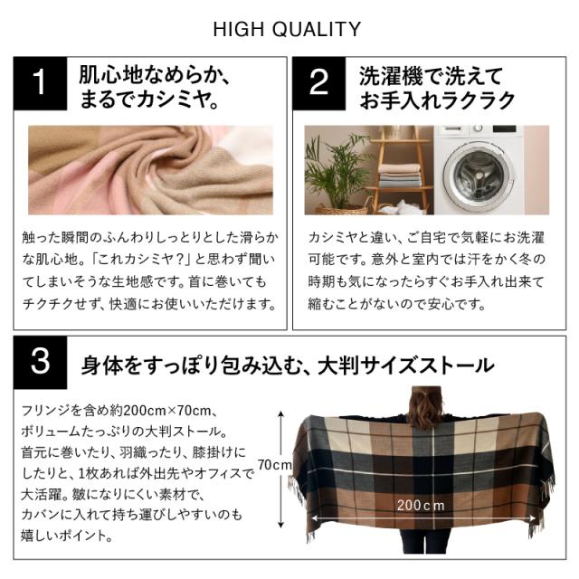 \ カシミヤのようにふんわりあったか♪ /優しく肌を包んでくれる大判ストール。寒い日の 通勤 通学やお出掛け、デートの時もこれさえあればずっと快適♪冬ギフトにおすすめです。