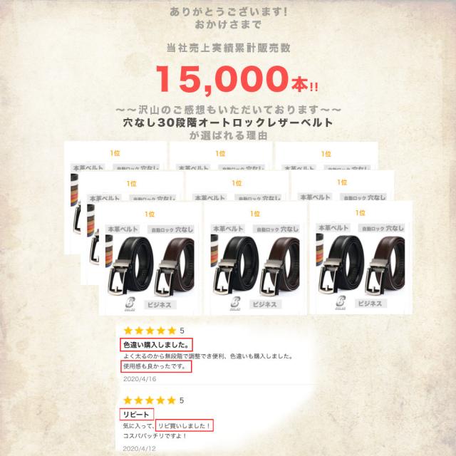 - 主人が太りだしどのベルトも合わなくなってこのベルトを見てこれだと思い買ってみて正解でした これからも買い続けるので宜しくお願いします。