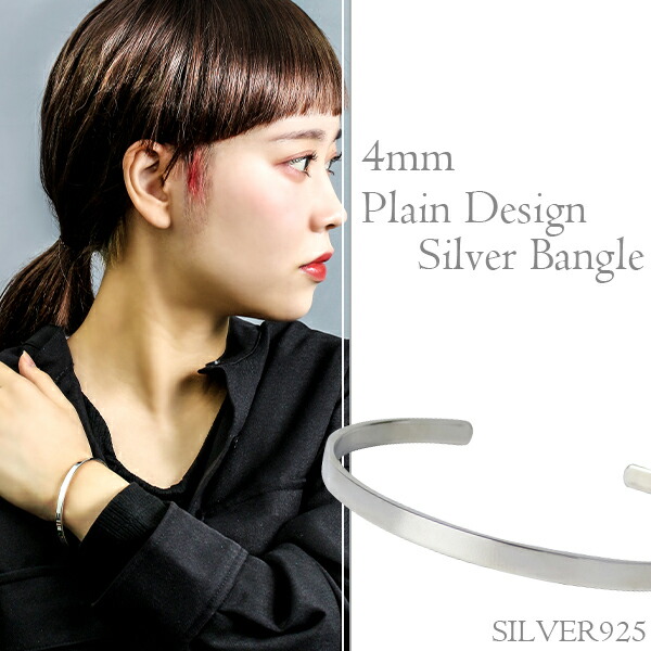 プレーン シルバーバングル 幅4mm シルバー 925 バングル メンズ レディース ユニセックス シルバーアクセサリー メンズバングル 男性用バングル