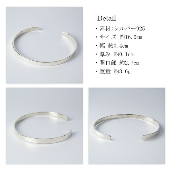 (シルバーアクセサリー/シルバーアクセ/シルバーブレスレット/シルバーバングル/メンズアクセ/レディースバングル/シンプル/平打ち/鏡面仕上げ)