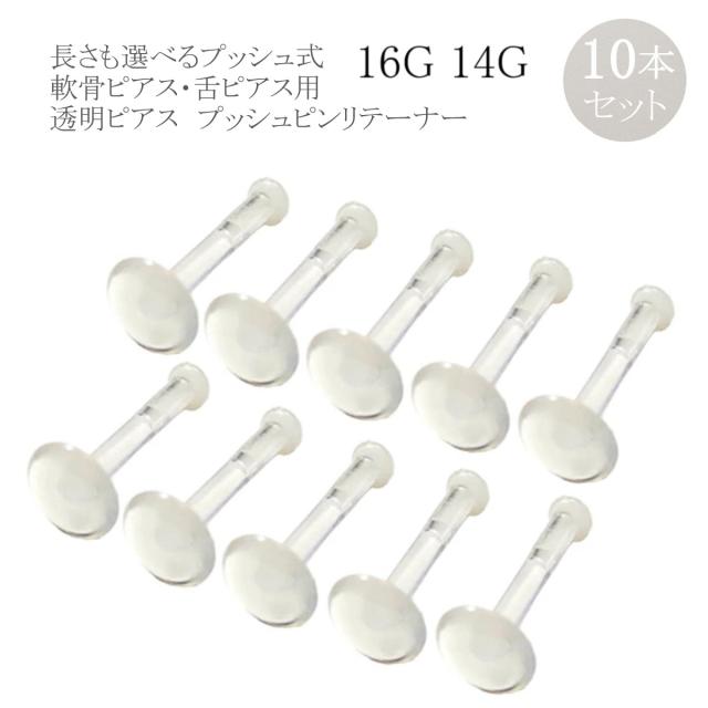 透明ピアス 10個パック セット プッシュピンリテーナー 16G 14G バイオフレックス クリア ボディピアス 軟骨ピアス トラガス ヘリックス 口ピアス 舌ピアス 金属アレルギー対応