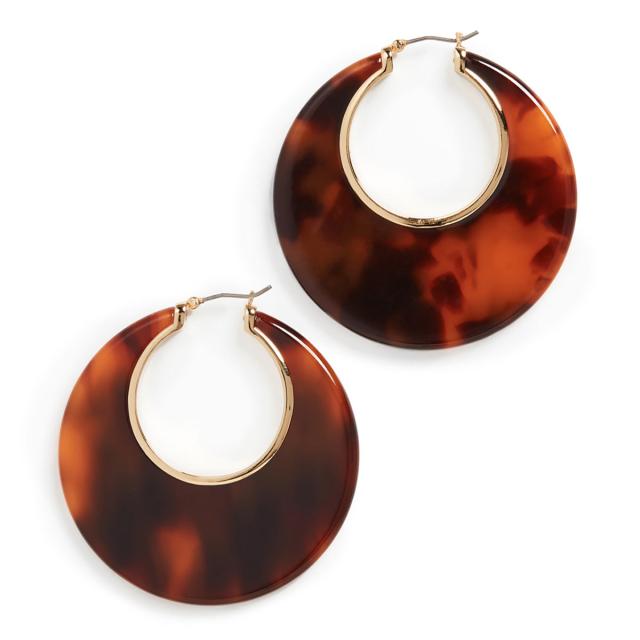 べっ甲柄にゴールドプレートが施されたフープピアスです。おしゃれでクールな装いができます。