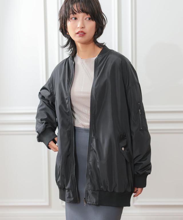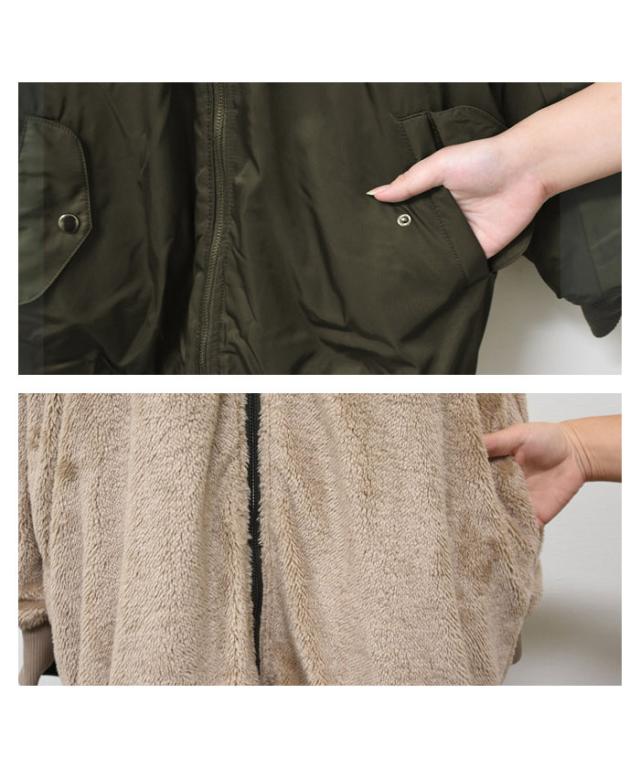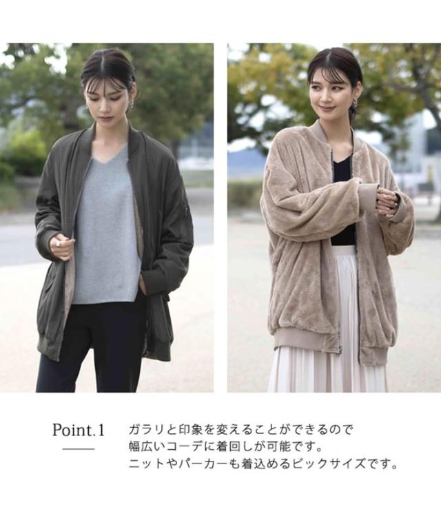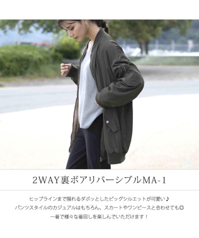 リバーシブルMA-1裏ボアブルゾン レディース ロング丈 長袖 M