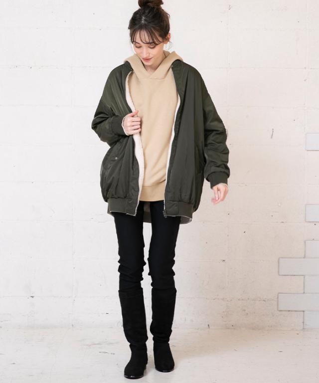 気分に合わせて使い分けができるリバーシブルMA-1裏ボアブルゾン。