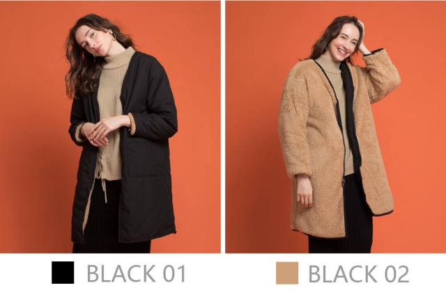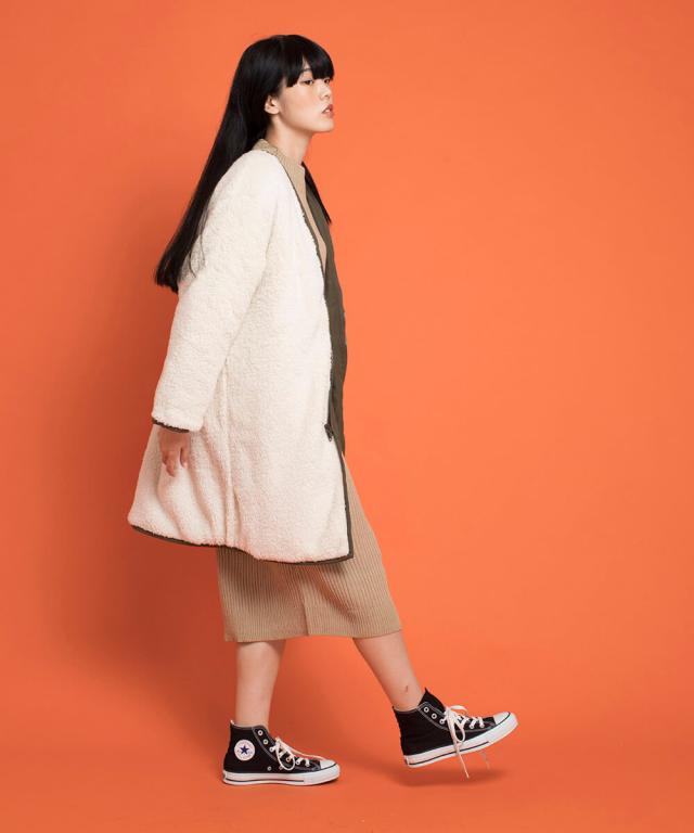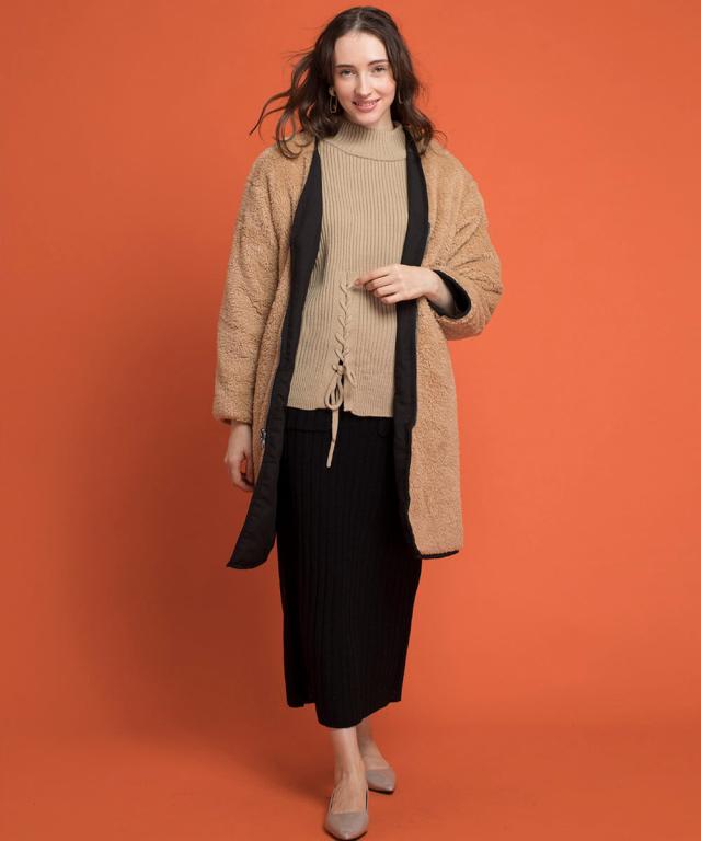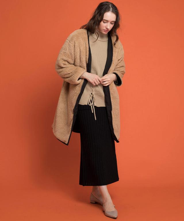 もこもこな両面切り替え可能なボアロングコート。