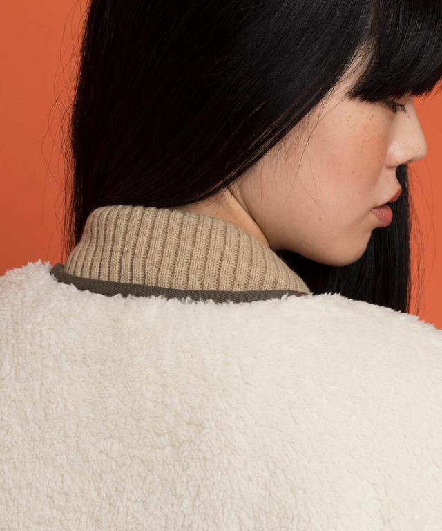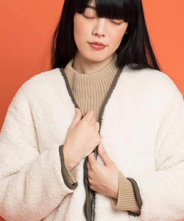 生地:マット感ある生地にふわふわボア生地