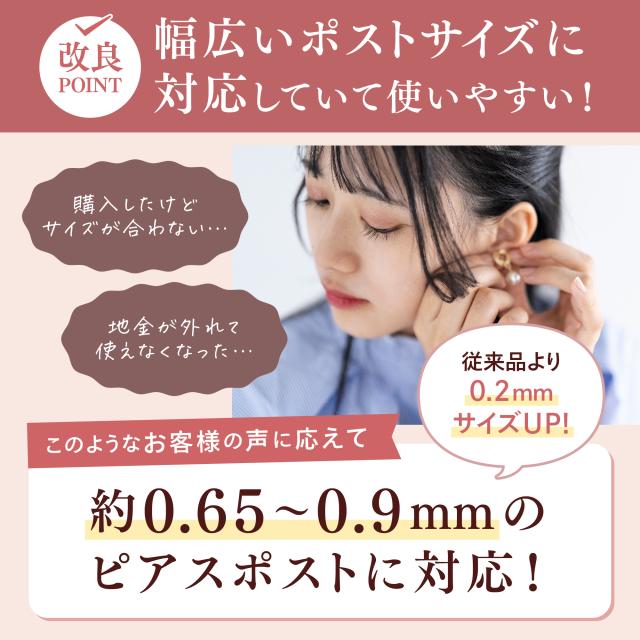 ※規定よりも太いポストを使用されますと、キャッチを外す際、シリコンが外れる可能性がございますので、ポストの太さをご確認の上ご使用ください。