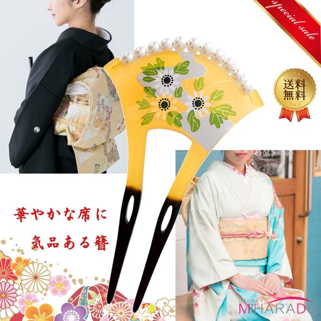 【即納 送料無料】かんざし バチ型 パール 小菊 蒔絵風 シンプル 留袖 扇型 付下げ 色留袖 黒留袖 留め袖 訪問着 結婚式 入学式