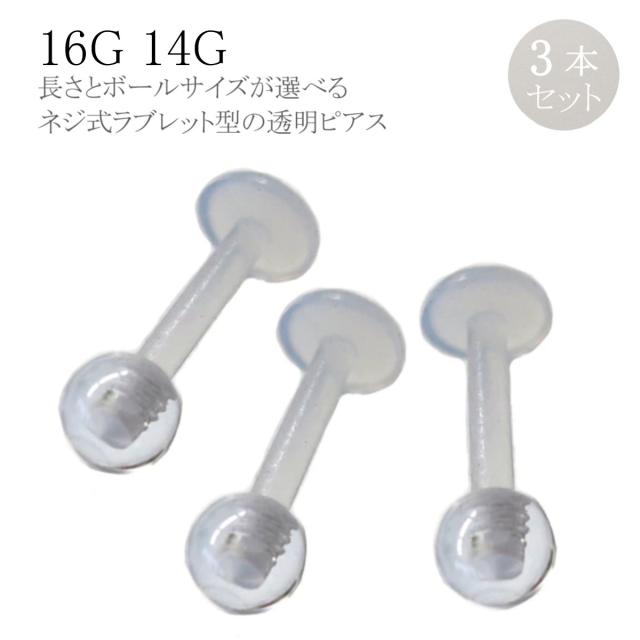 透明ピアス 3本セット ラブレットリテーナー 16G 14G バイオフレックス クリア 透明 軽い ボディピアス ラブレット リテーナー ヘリックス 軟骨ピアス 口ピアス シークレットピアス 金属アレルギー対応