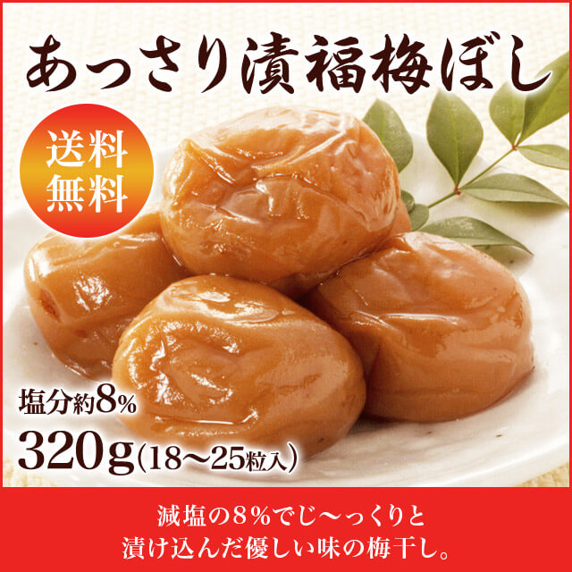 梅干し 送料無料 『あっさり漬福梅ぼし320g』 塩分約8% 福井県産紅映梅 (約18粒〜25粒) 福梅ぼし 食品 お取り寄せ グルメ