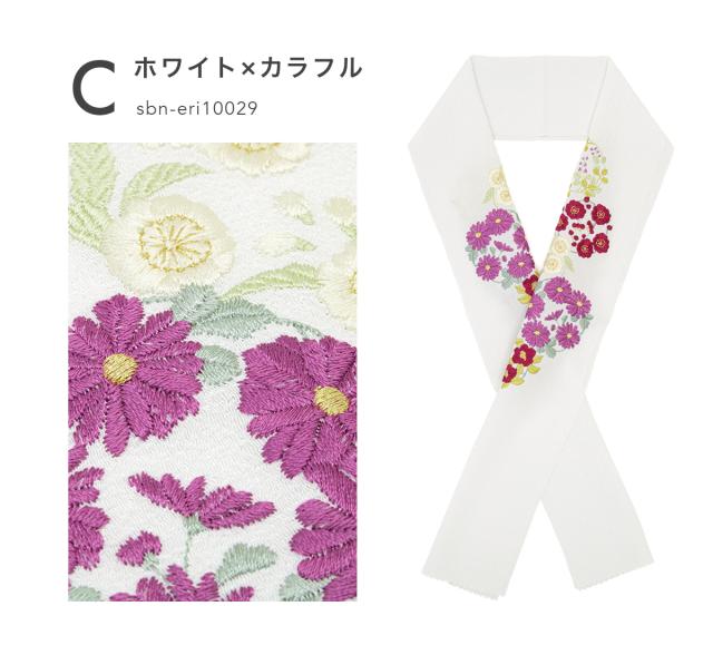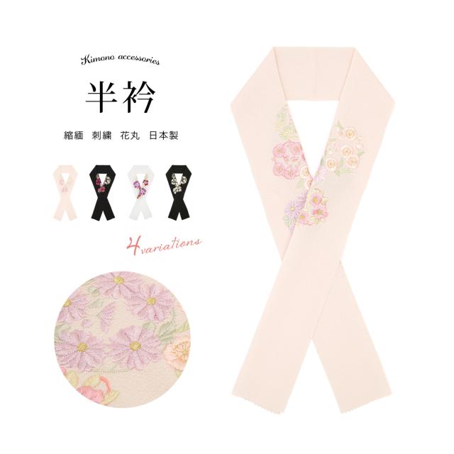 半襟 半衿 おしゃれ 刺繍 振袖 成人式 白 ピンク 黒 桜 梅 椿 縮緬 フォーマル 日本製 和装小物 女性 レディース メール便対応 送料無料