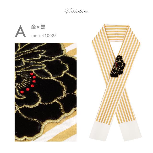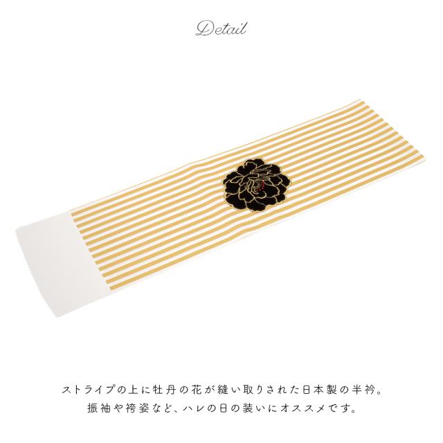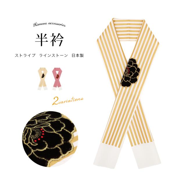 半襟 半衿 成人式 振袖 ストライプ 牡丹 ラインストーン フォーマル 日本製 刺繍 金 黒 白 赤 和装小物 女性 レディース メール便対応 送料無料