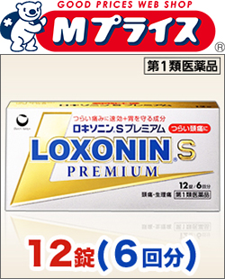 ◆特 長◆ 速さ、効きめ、やさしさの3つを同時に考えたプレミアム処方! 「ロキソニンSプレミアム 12錠」は、つらい頭痛に、"速さ、効きめ、やさしさ"を同時に追求したプレミアム処方の解熱鎮痛薬です。 痛みや熱の原因物質(プロスタグランジン)をすばやく抑える解熱鎮痛成分・ロキソプロフェンナトリウム水和物に、初めてアリルイソプロピルアセチル尿素と無水カフェインを同時配合。(※眠くなる成分を含んでいます。)鎮痛効果を助け、つらい頭痛などの痛みにより強い効果を発揮します。 からだにやさしいプロドラッグ製剤で、胃への負担を軽減。(プロドラッグ製剤とは、成分が体内で吸収されてから活性型に変化し効果を発揮する仕組みの製剤です。)さらにメタケイ酸アルミン酸マグネシウムを配合で、胃粘膜保護作用により胃を守ります。 1回2錠。のみやすいピンクの小型錠です。 ●してはいけないこと (守らないと現在の症状が悪化したり、副作用が起こりやすくなります) 1.次の人は服用しないで下さい。 (1)本剤又は本剤の成分によりアレルギー症状を起こしたことがある人 (2)本剤又は他の解熱鎮痛薬、かぜ薬を服用してぜんそくを起こしたことがある人 (3)15歳未満の小児 (4)医療機関で次の治療を受けている人 胃・十二指腸潰瘍、肝臓病、腎臓病、心臓病 (5)医師から赤血球数が少ない(貧血)、血小板数が少ない(血が止まりにくい、血が出やすい)、白血球数が少ない等の血液異常(血液の病気)を指摘されている人 (6)出産予定日12週以内の妊婦 2.本剤を服用している間は、次のいずれの医薬品も服用しないで下さい。 他の解熱鎮痛薬、かぜ薬、鎮静薬、乗り物酔い薬 3.服用後、乗物又は機械類の運転操作をしないで下さい。 (眠気等があらわれることがあります) 4.服用前後は飲酒しないで下さい。 5.長期連続して服用しないで下さい。 (3〜5日間服用しても痛み等の症状が繰り返される場合には、服用を中止し、医師の診療を受けて下さい) ●相談すること 1.次の人は服用前に医師、歯科医師又は薬剤師に相談して下さい。 (1)医師又は歯科医師の治療を受けている人 (2)妊婦又は妊娠していると思われる人 (3)授乳中の人 (4)高齢者 (5)薬などによりアレルギー症状を起こしたことがある人 (6)次の診断を受けた人 気管支ぜんそく、潰瘍性大腸炎、クローン病、全身性エリテマトーデス、混合性結合組織病 (7)次の病気にかかったことがある人 胃・十二指腸潰瘍、肝臓病、腎臓病、血液の病気 2.服用後、次の症状があらわれた場合は副作用の可能性がありますので、直ちに服用を中止し、文書を持って医師又は薬剤師に相談して下さい。 (1)本剤のような解熱鎮痛薬を服用後、過度の体温低下、虚脱(力が出ない)、四肢冷却(手足が冷たい)等の症状があらわれた場合 (2)服用後、消化性潰瘍、むくみがあらわれた場合 また、まれに消化管出血(血を吐く、吐き気・嘔吐、腹痛、黒いタール状の便、血便等があらわれる)、消化管穿孔(消化管に穴があくこと。吐き気・嘔吐、激しい腹痛等があらわれる)、小腸・大腸の狭窄・閉塞(吐き気・嘔吐、腹痛、腹部膨満等があらわれる)の重篤な症状が起こることがあります。その場合は直ちに医師の診療を受けて下さい。 (3)服用後、次の症状があらわれた場合 関係部位:症状 ・皮膚:発疹・発赤、かゆみ ・消化器:腹痛、胃部不快感、食欲不振、吐き気・悪心・嘔吐、腹部膨満、胸やけ、口内炎、消化不良 ・循環器:血圧上昇、動悸 ・精神神経系:眠気、しびれ、めまい、頭痛 ・その他:胸痛、倦怠感、顔面のほてり、発熱、貧血、血尿 まれに下記の重篤な症状が起こることがあります。その場合は直ちに医師の診療を受けて下さい ・ショック(アナフィラキシー):服用後すぐに、皮膚のかゆみ、じんましん、声のかすれ、くしゃみ、のどのかゆみ、息苦しさ、動悸、意識の混濁等があらわれる。 ・血液障害:のどの痛み、発熱、全身のだるさ、顔やまぶたのうらが白っぽくなる、出血しやすくなる(歯茎の出血、鼻血等)、青あざができる(押しても色が消えない)等があらわれる ・皮膚粘膜眼症候群(スティーブンス・ジョンソン症候群)・中毒性表皮壊死融解症:高熱、目の充血、目やに、唇のただれ、のどの痛み、皮膚の広範囲の発疹・発赤が持続したり、急激に悪化する。 ・腎機能障害:発熱、発疹、尿量が減少、全身のむくみ、全身のだるさ、関節痛(節々が痛む)、下痢等があらわれる。 ・うっ血性心不全:全身のだるさ、動悸、息切れ、胸部の不快感、胸が痛む、めまい、失神等があらわれる ・間質性肺炎:階段を上ったり、少しの無理をしたりすると、息切れがする・息苦しくなる、空せき、発熱等がみられ、これが急にあらわれたり、持続したりする。 ・肝機能障害:発熱、かゆみ、発疹、黄疸(皮膚や白目が黄色くなる)、褐色尿、全身のだるさ、食欲不振等があらわれる。 ・横紋筋融解症:手足・肩・腰等の筋肉が痛む、手足がしびれる、力が入らない、こわばる、全身がだるい、赤褐色尿等があら