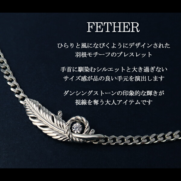 ブレスレット メンズ ダンシングストーン fether クロスエモーション シルバー925 シルバーブレスレット メンズブレスレット 喜平チェーン フェザー