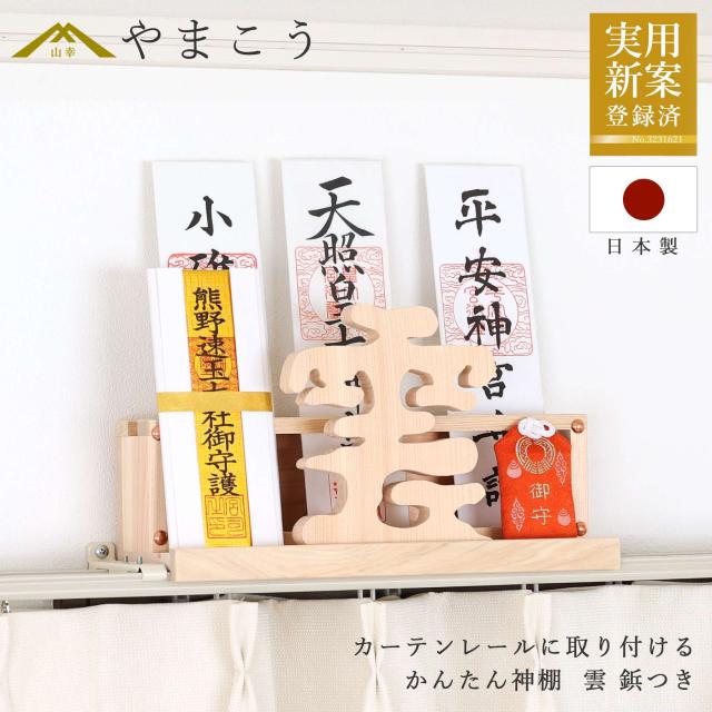 かんたん神棚 雲 鋲付き カーテンレールに取り付け お札入れ お札立て 棚に置く モダン神棚