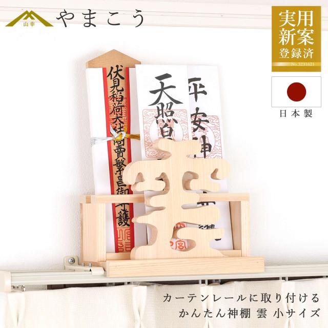 省スペース かんたん神棚 小 雲 カーテンレールに取り付け お札入れ お札立て 棚に置く モダン神棚