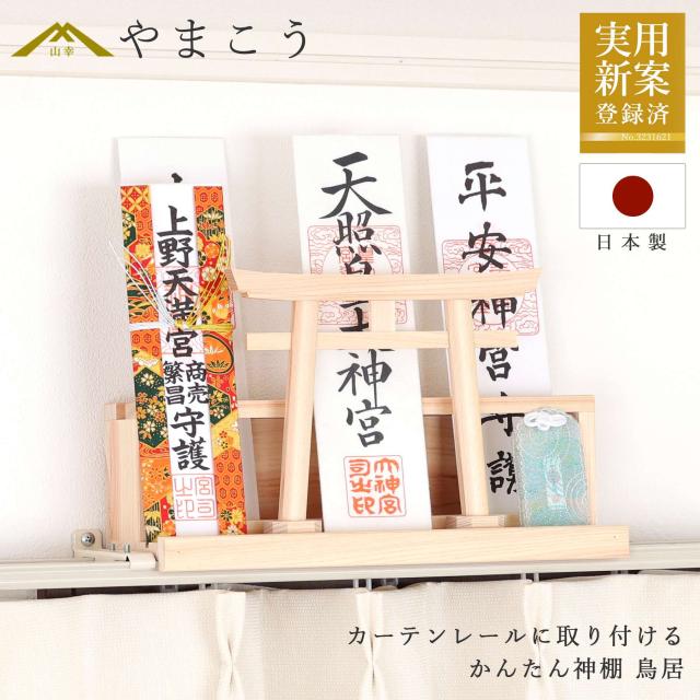 かんたん神棚 鳥居 鋲なし カーテンレールに取り付け お札入れ お札立て 棚に置く モダン神棚