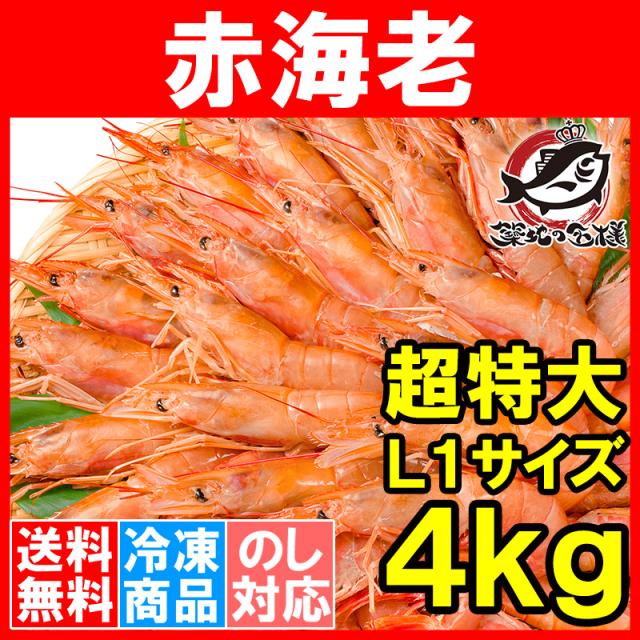 赤海老 赤えび 4kg 超特大 L1 20〜40尾 業務用 2kg×2箱・4kg お刺身用 ぼたん海老を超える希少な超特大!大きくプリプリの赤海老は甘みが違う。赤えび 赤エビ あかえび アカエビ アルゼンチン 寿司 バーベキュー