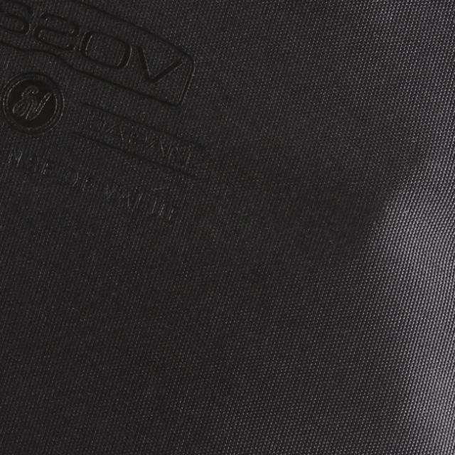 本体素材にはタテ・ヨコに305dの特殊ポリエステル糸を使用したCORDURA 305D fabric を使用している為、摩擦・引き裂き・擦り切れ等に対する強度を備えています。また、裏面に L-VENT 加工(3レイヤー)を施している為、「水蒸気を通し、雨風を通さない」耐水圧20,000mm以上の透湿防水性素材となっております。前ポケット、サイドZIPポケット、ウェストハーネスポケット部分にはシームテープ加工を施しておりますので、縫製部分からの水滴の侵入を防ぎます。耐水圧:20,000m/m