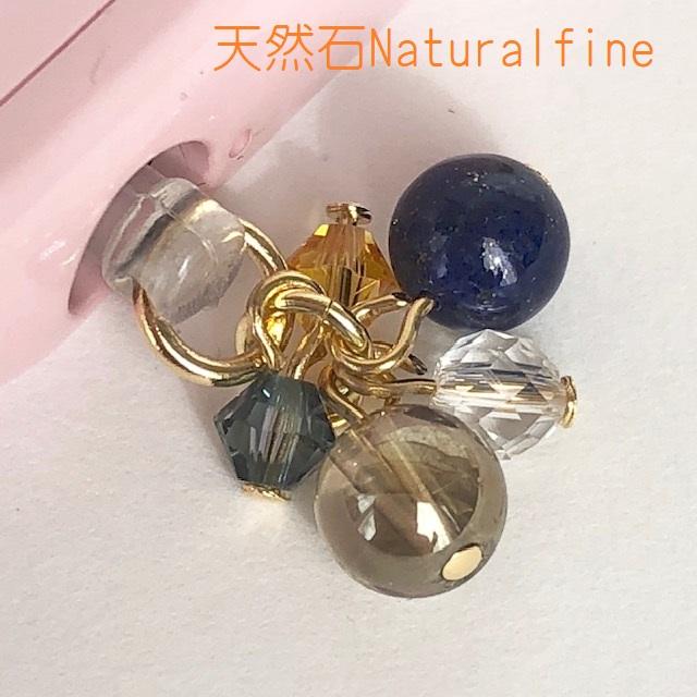 こちらは、幸運と成功をもたらすラピスラズリとシャンパンクォーツ、スワロフスキーのイヤホンジャックです!
