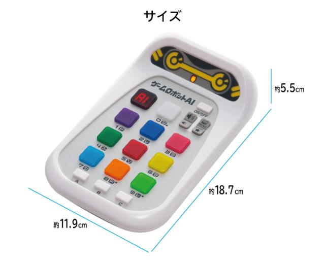 人気のゲームロボットに新タイプが登場!シリーズ人気の20種類のゲームを搭載!取扱説明書を読まなくても、ゲームの遊び方を本体が音声でガイダンスしてくれます。また、ゲームの途中や終わり間際などのタイミングで音声で応援をしてくれます。[商品サイズ(約)]11.9×5.5×18.7cm[商品重量(約)]200g[電源]単3アルカリ乾電池×3本(別売)[材質]ABS樹脂、TPR、PC[セット内容]取扱説明書、本体[生産国]中国