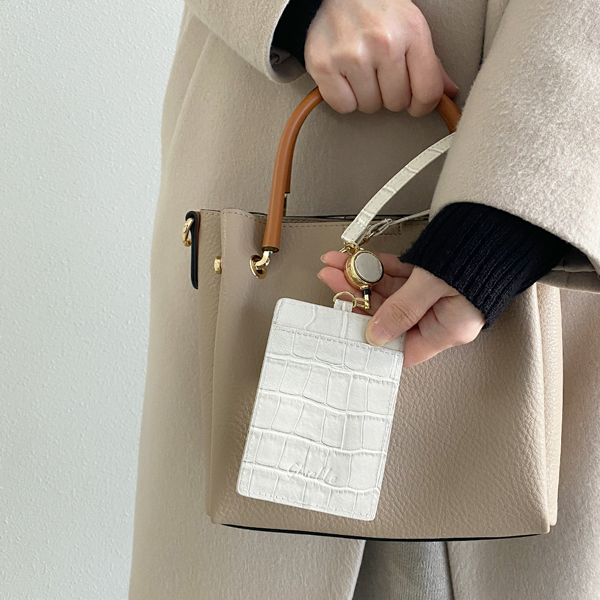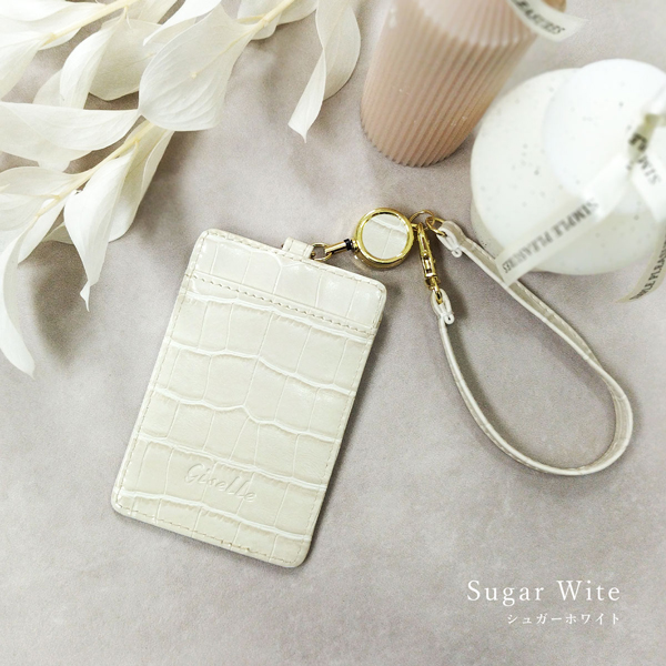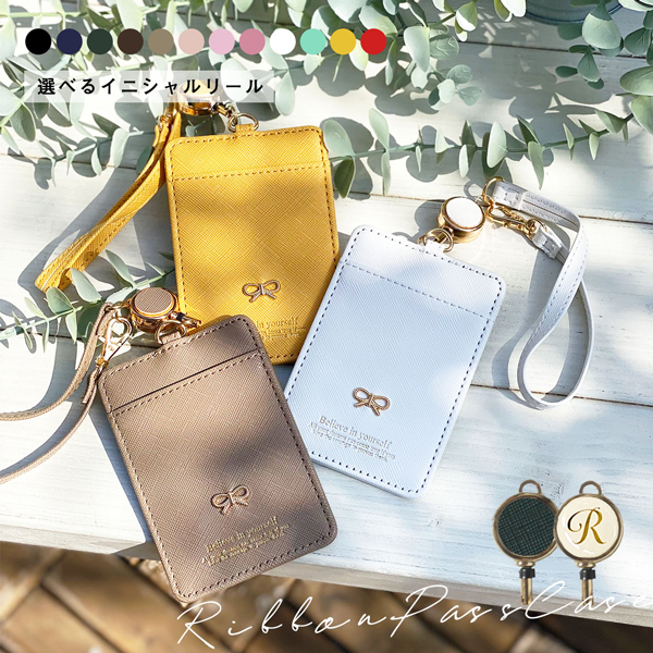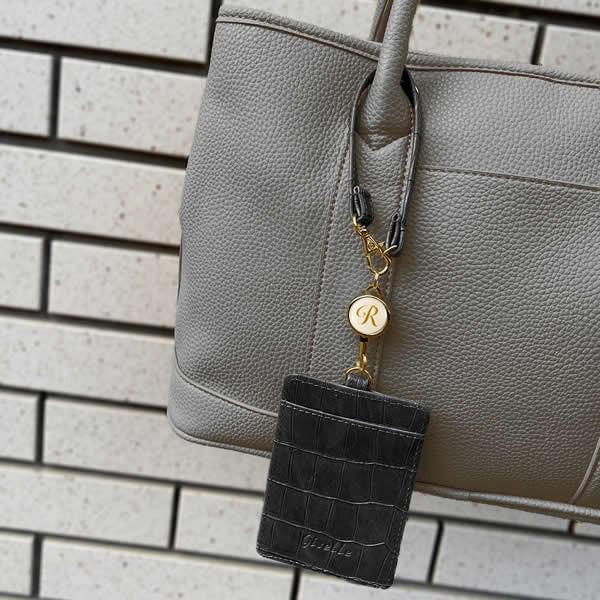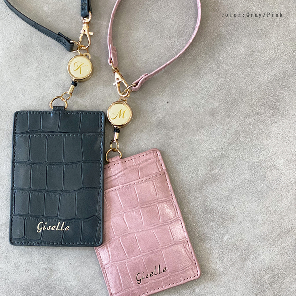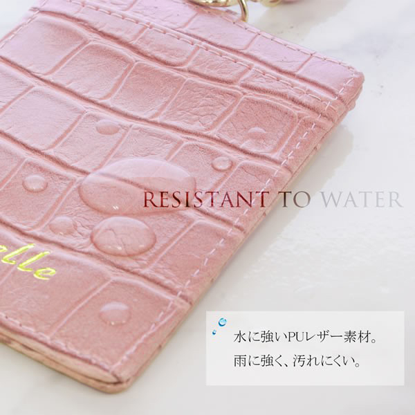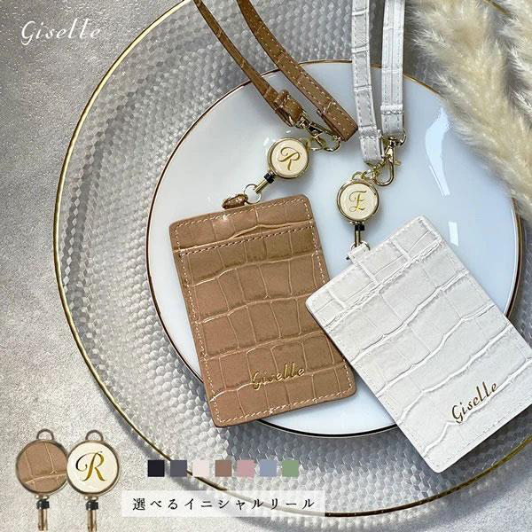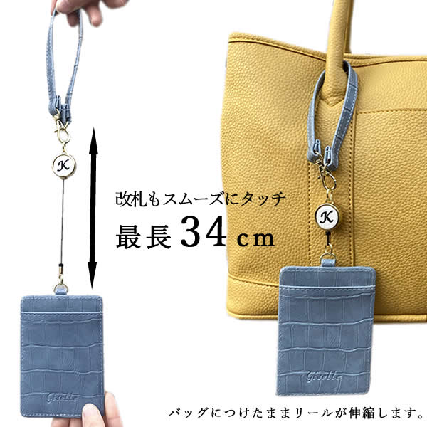 【選べるイニシャルリール】パスケース リール付き レディース 定期入れ IDケース クロコ型押し 伸縮 リール カードケース スマイル 推し活 社員証 通勤 通学 学生証 IDカードホルダー ICカード 母の日 プレゼント ギフト