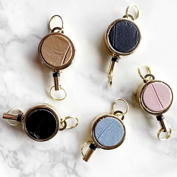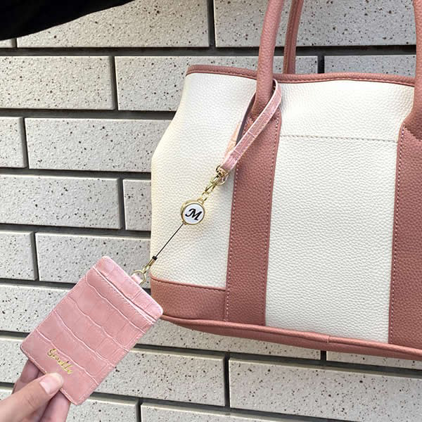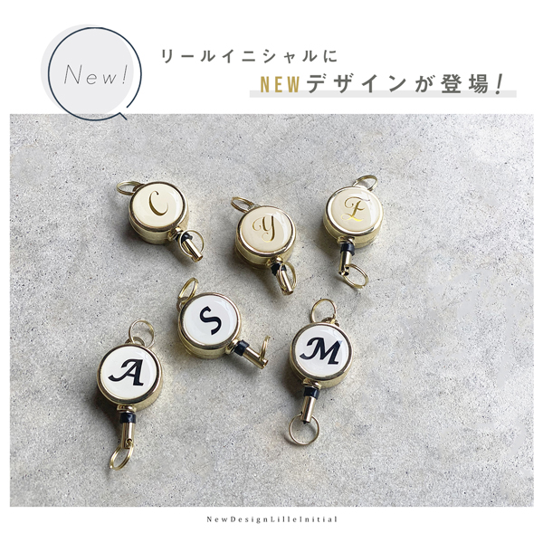 伸縮リールは生地デザインと、選べるイニシャル12種類&スマイル3カラー♪