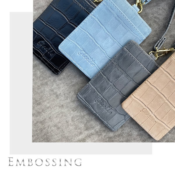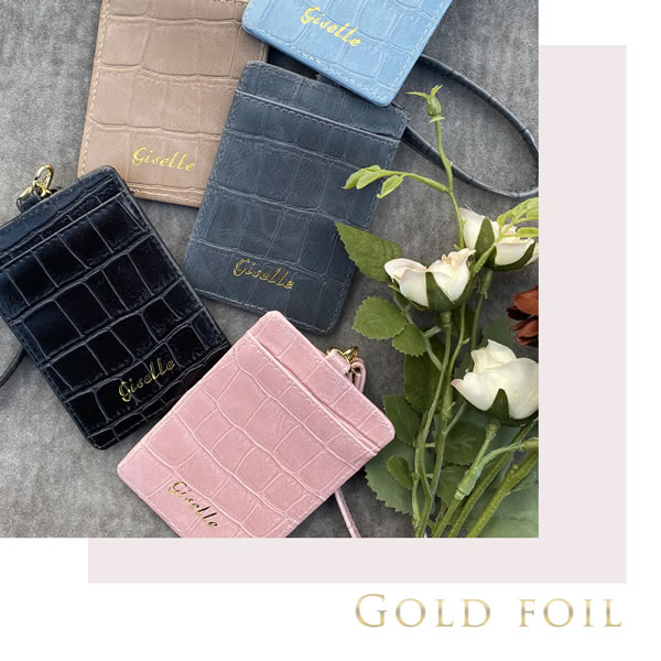 人気のクロコ風型押しでゴールドロゴ又は、型押しロゴよりお選びいただますので、 メンズ・レディース共にご使用いただけるようデザインしました。