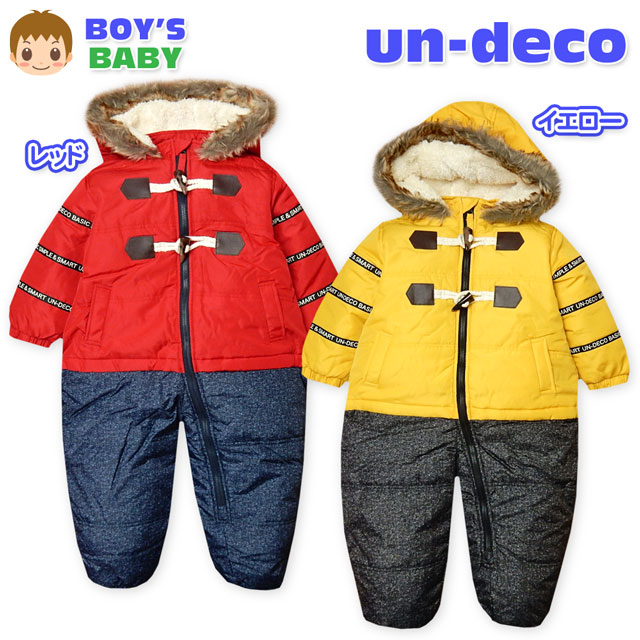 男児 ベビー 裏フリース ジャンプスーツ 中綿 ボア切替 撥水加工 ファー付フード カバーオール ベビー服 男の子 80cm 90cm 95cm a-1503