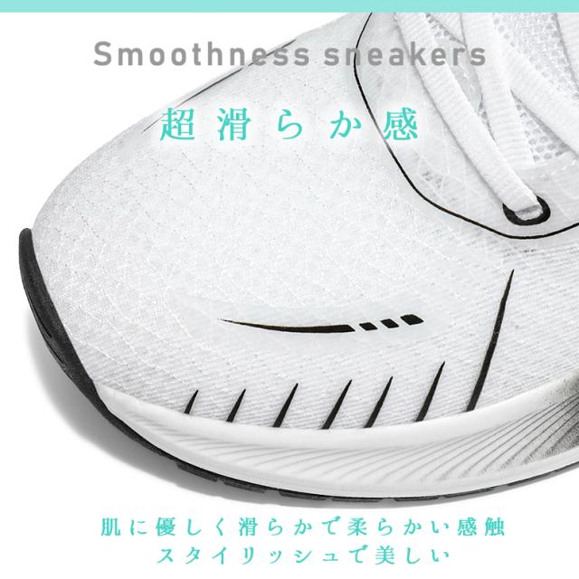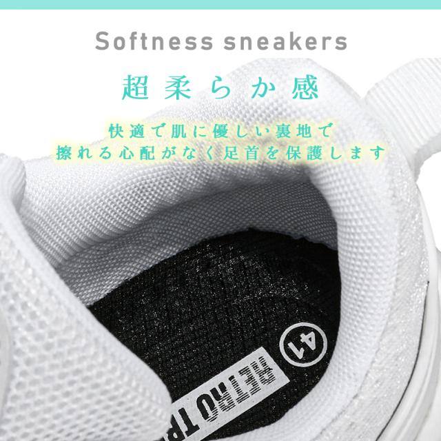 アッパーには目が粗いニット素材を採用しており、柔くて通気性が良いです。シューズ内を快適に保ち、足を自由に呼吸可能、長時間着用することによる蒸れを防ぎ、快適な履き心地を実現します。