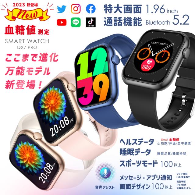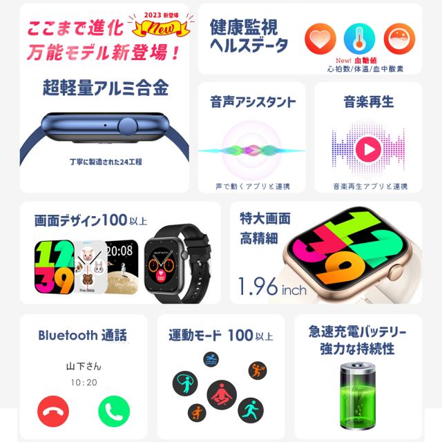 【半額セール・5,888円→2,944円】スマートウォッチ 血糖値 日本製センサー 通話機能 体温測定 技適認証 血圧 天気予報 1.96インチ大画面 IP67防水 活動量計 心拍計 歩数計 腕時計 SMS通知 日本語対応